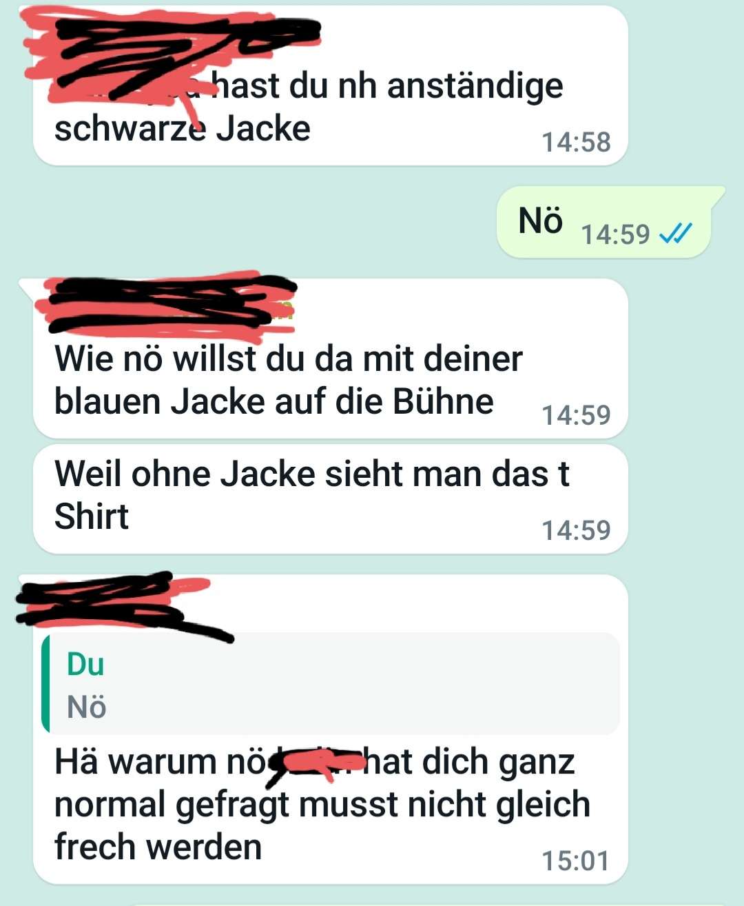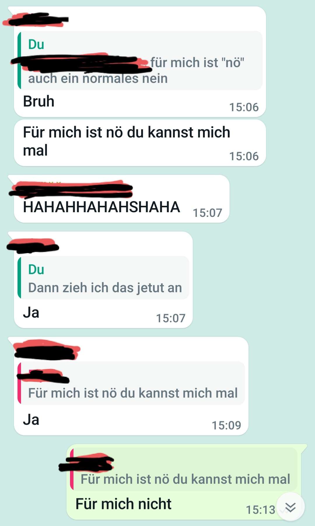 Ich schreibe meinen Freunden min. 3 mal am Tag „Nö“