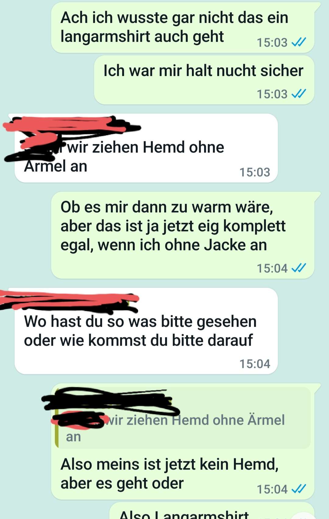Bruder die meinten doch Hemd, was kann ich daraus interpretieren außer, dass ein Hemd ein MUSS ist??!!!