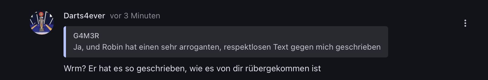 Von Gamer: "Ja, der glaubt auch immer alles was er sagt ist richtig" Nein ja eben nicht und Robin fragt ja auch immer wieder nach ob das so rüberkommt, weil er es ja eben nicht möchte. Du stellst ihn jetzt wieder als den Bösen da.