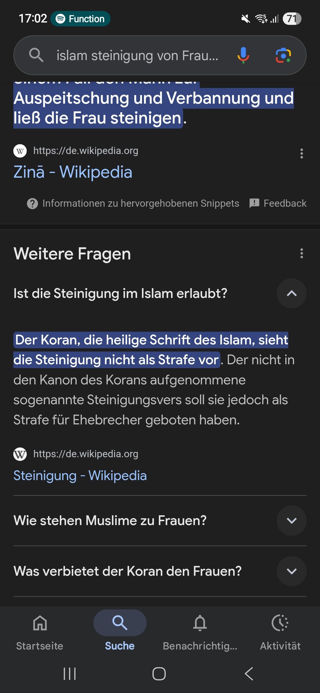 Ich sage aber auch nicht, dass die AfD alle Nazis sind. Du aber beschuldigst den ganzen Islam, nur weil du Videos gesehen hast, wie jemand gesteinigt wurde