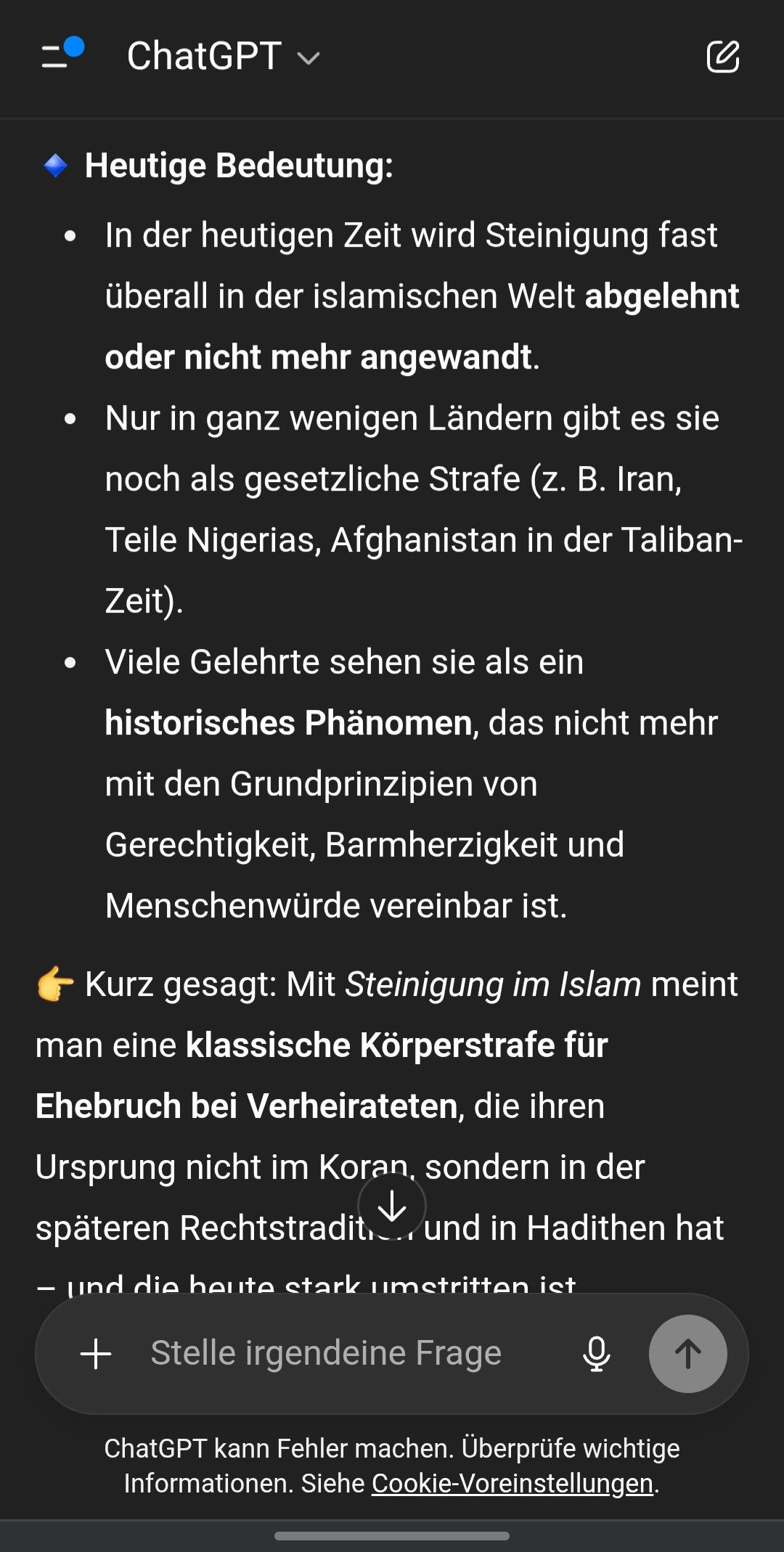 Können wir uns darauf einigen, dass es Steinigungen gibt, aber ich nicht verallgemeinern sollte?