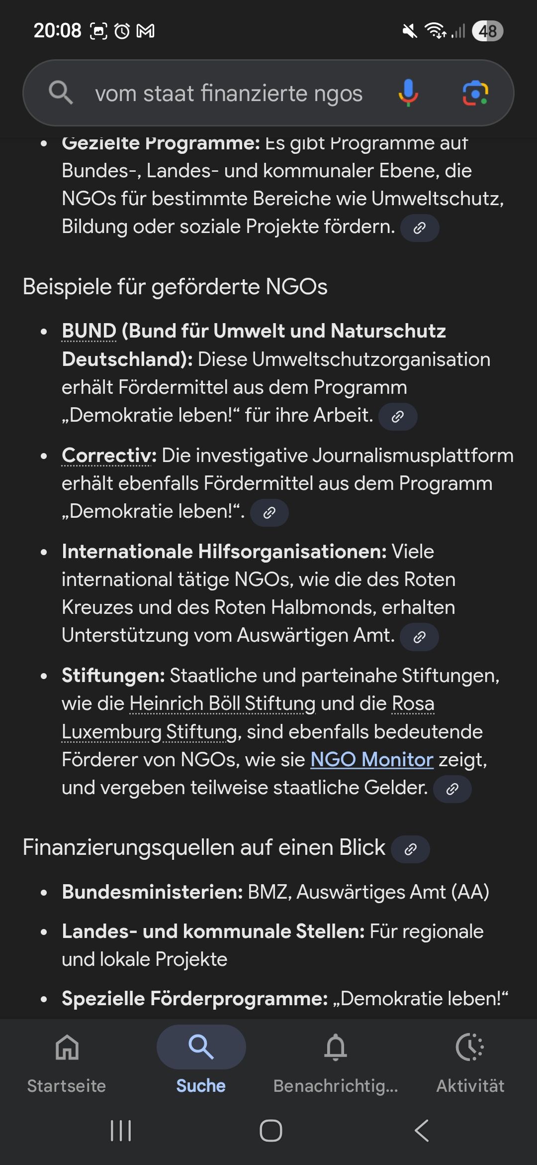Find ich bissel vage. Also, klar kenne ich mich jetzt auch nicht mega genau aus. Aber "manche" bekommen Geld "von der Regierung" (von welcher?) oder von "anderen Organisationen"... das kann halt viel heißen. Will dir deinen Punkt nicht absolut absprechen, aber für mich klingt das wie "kann sein".