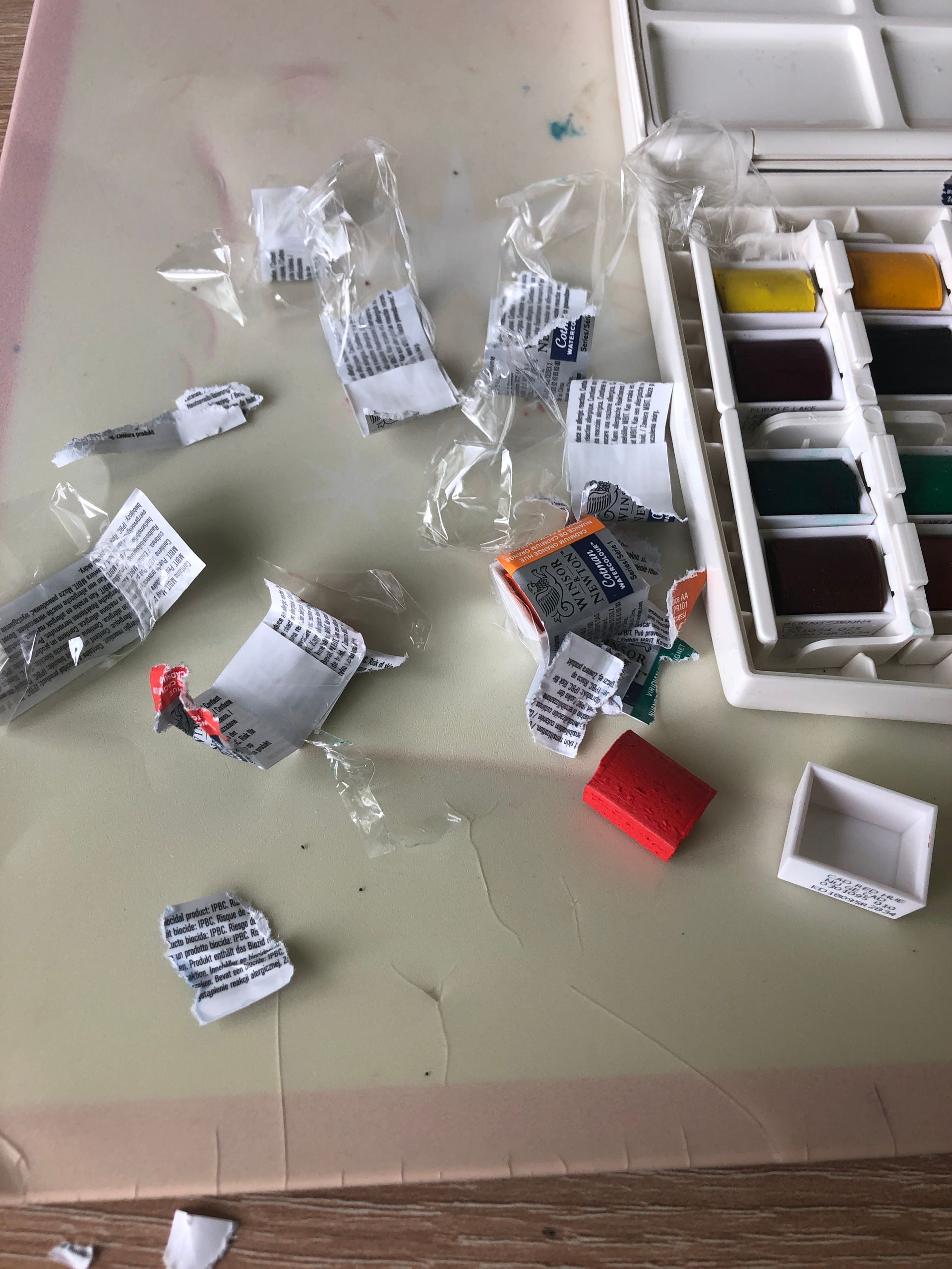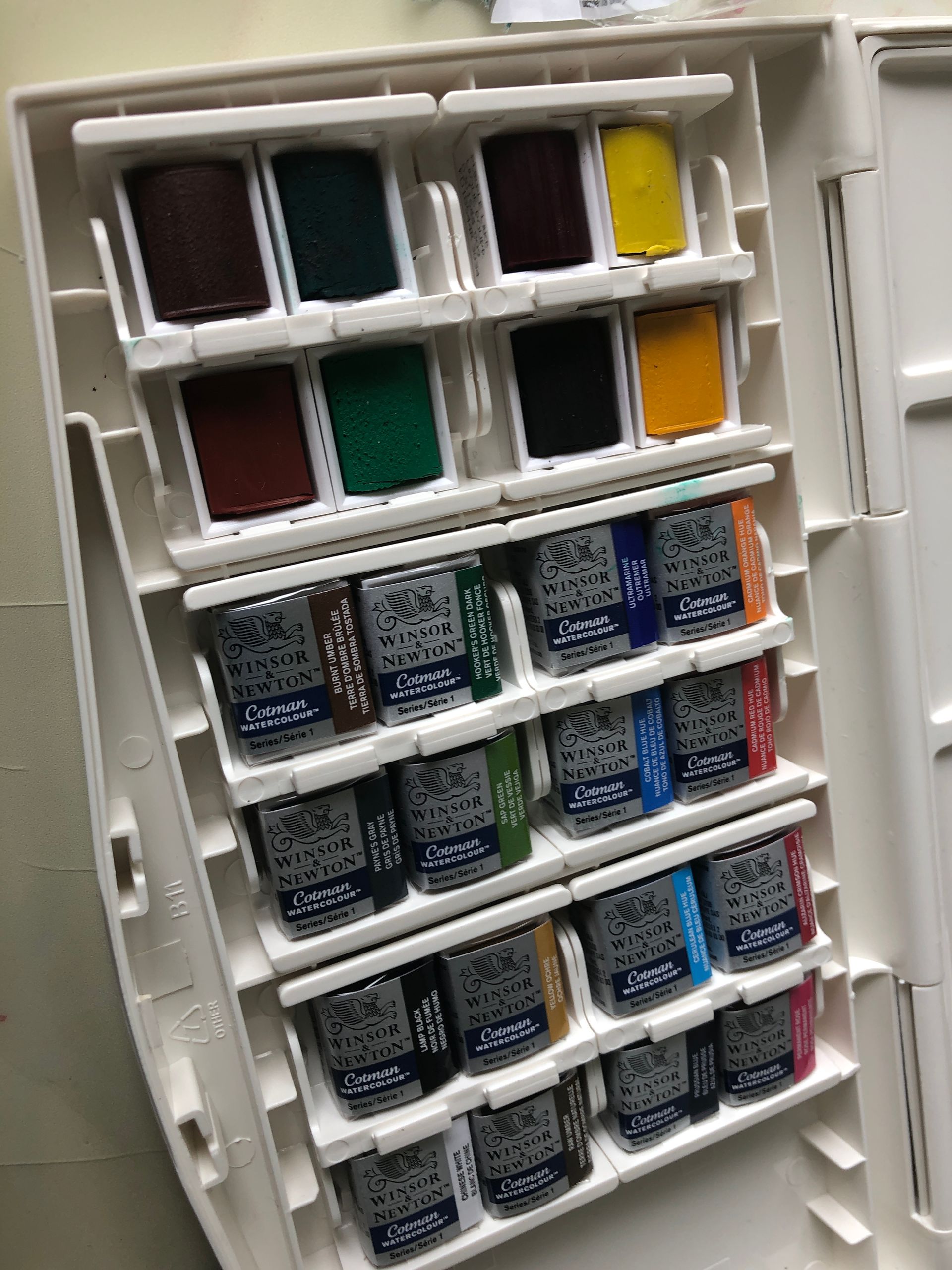 Ich hab so Aquarellfarben, wo ein so eine Dose ist, wie bei einem Wasserfarbkasten...