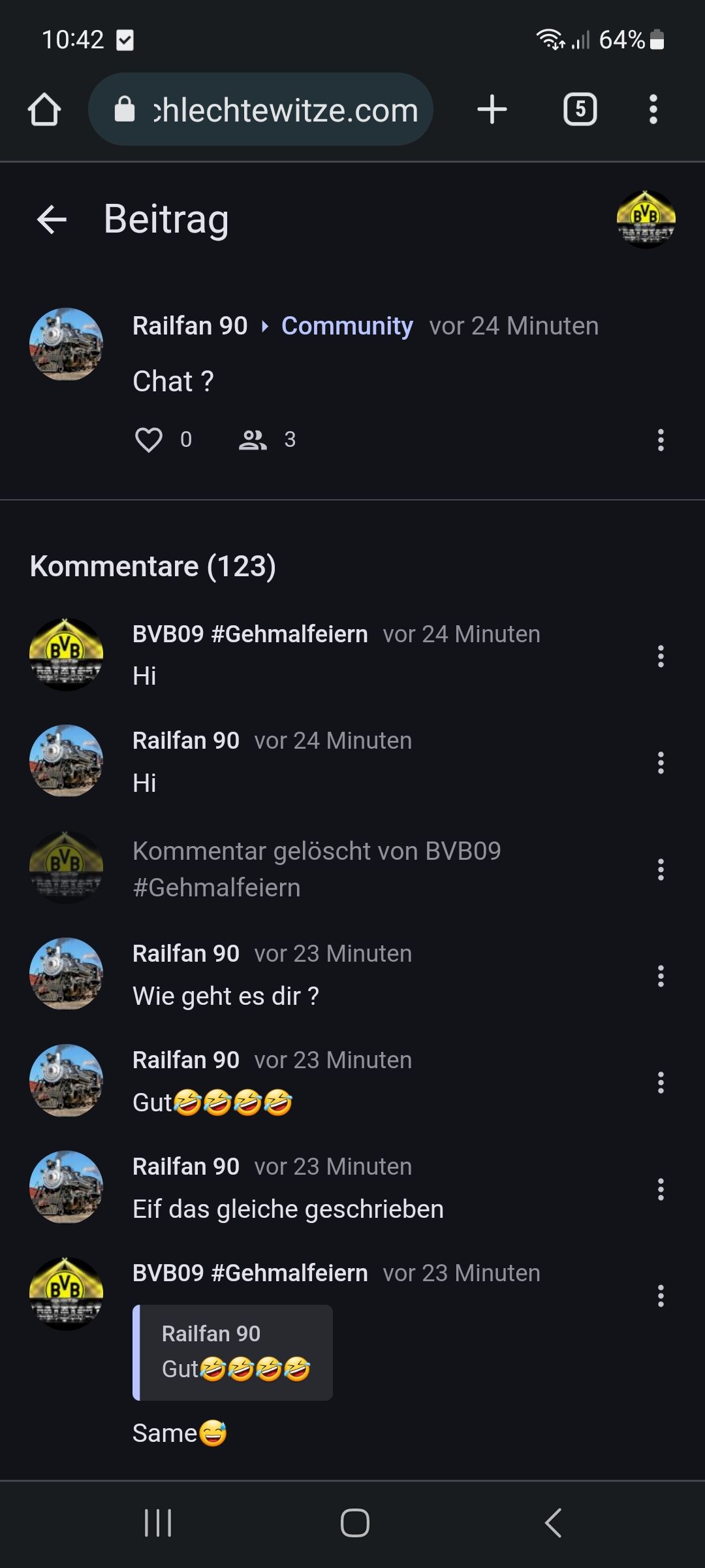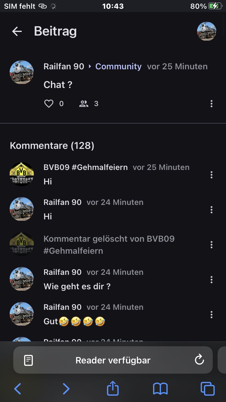 Walum hast du aber ein weiterbeitrag gemacht, wir wollten doch die alten chats 1000 machen