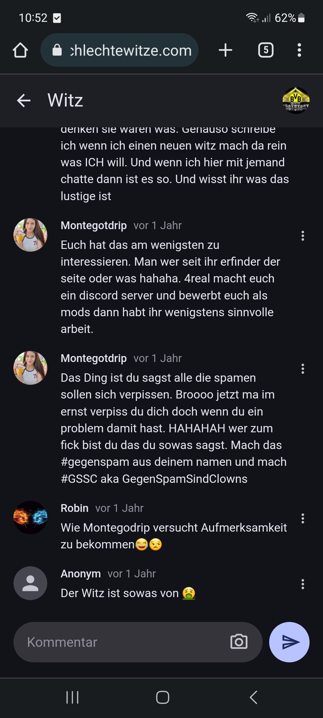 „Komm, wäre dich lustig 50 zu 50, also mach gefälligst irgendwelche wegwerf accs“ so kommts leider rüber