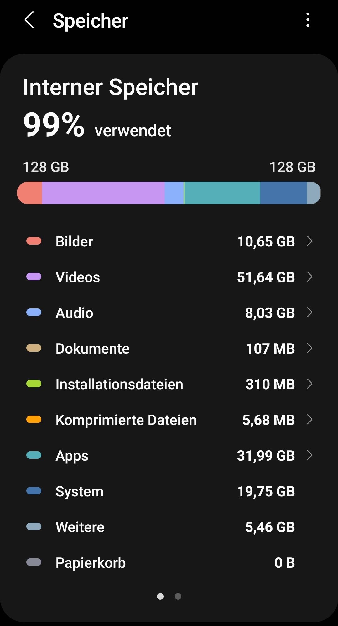 Joa... wenn man gerne die Musik offline hat um sie überall anhören zu können, und zusätzlich sich selber aufnimmt beim Klavier spielen... da kann es schon mal schnell viel werden.