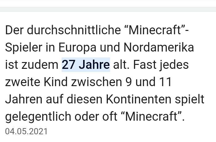 Das Durchschnittsalter für Minecraftspieler ist 27😳