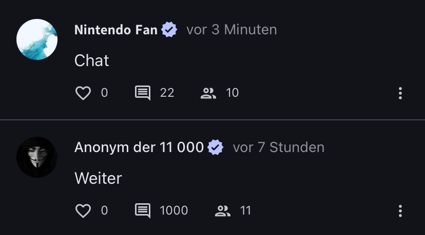 Du weißt doch den Geheimchat, wo ich reingeschrieben habt „schreibt mal mehr“, oder? (Hab den jz hier nicht offen, deshalb kann ich kein Screenshot schicken🥲)