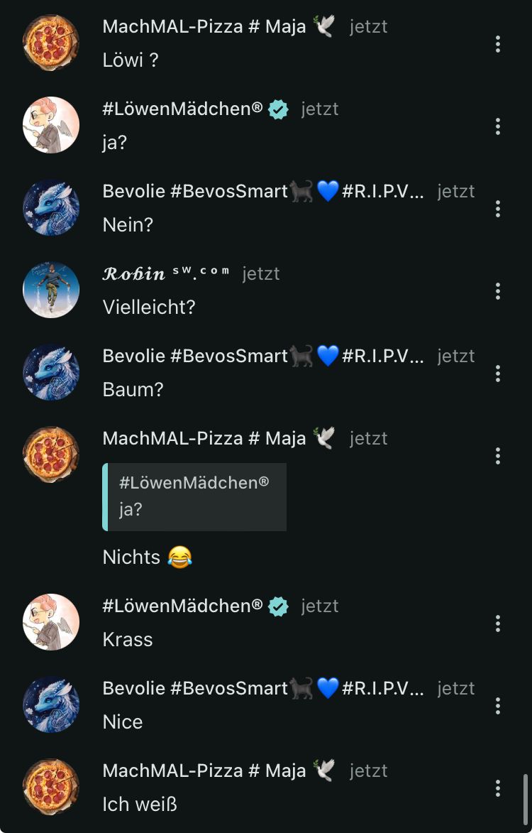 Ja keine Ahnung ist ja auch ok wenn man mich nicht mag, aber ich mag es halt immer mehr wenn Leute mit mir reden und nicht hinter meinem Rücken lästern oder nix sagen