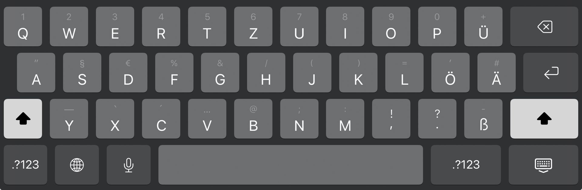 Ach so, Bildschirm. Ich dachte mit "Qwertz" meinst du eine echte QWERTZ-Tastatur. Trotzdem ist mir ein Rätsel, wieso Apple das ß dort hin tut.