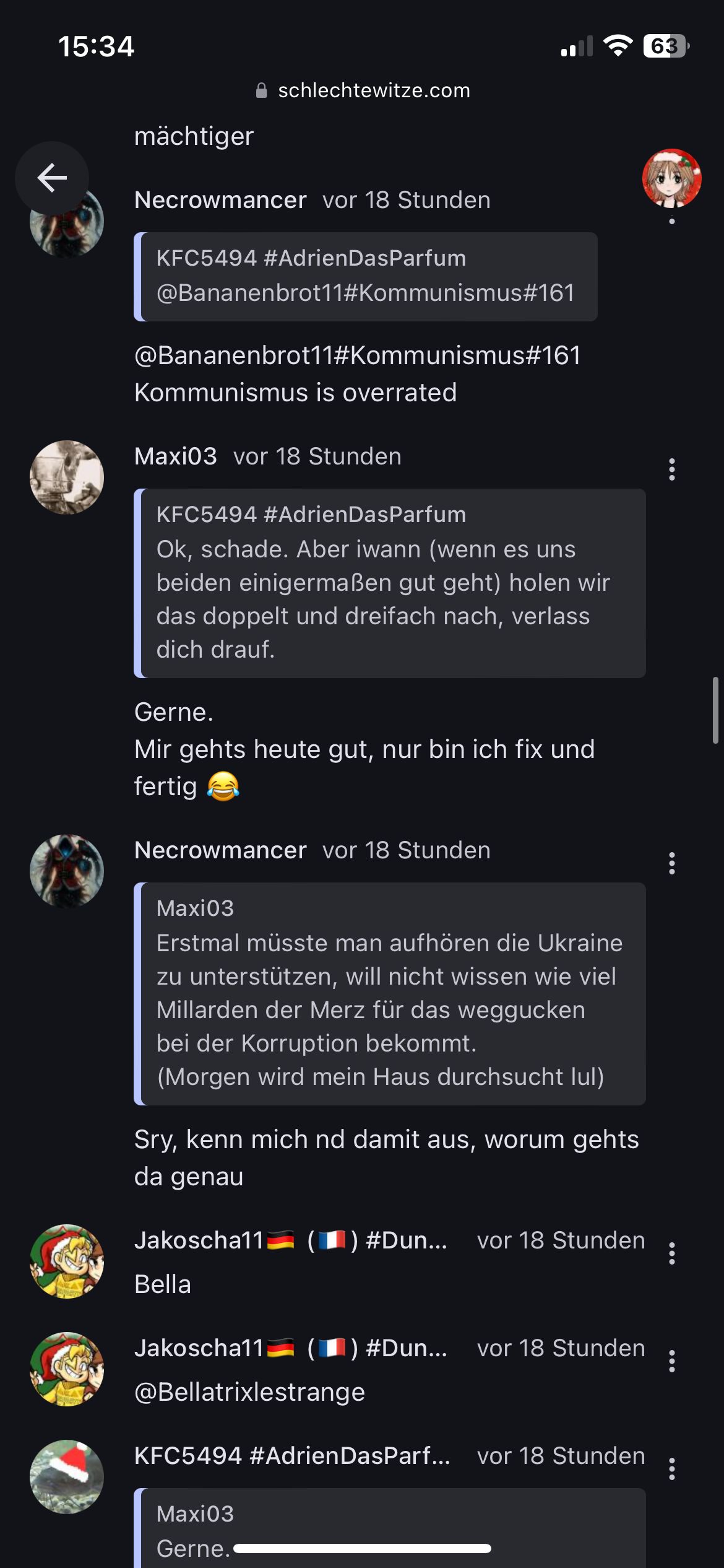 Du bist Necrowmancer, der Typ, der über eine depressive Deutschlehrerin, Grammatikmüll-Hausaufgaben und einen stinklangweiligen Schulausflug zu Burg Linn jammert. Außerdem hast du Stress mit irgendeinem Typen aus deiner Klasse und wirst sauer, wenn man Witze über Kinderkram macht. Wenigstens hast du Eier, aber du bist trotzdem nur ein weiterer Trottel im Chat. Und jetzt verschwende nicht meine Zeit. Geh weg.