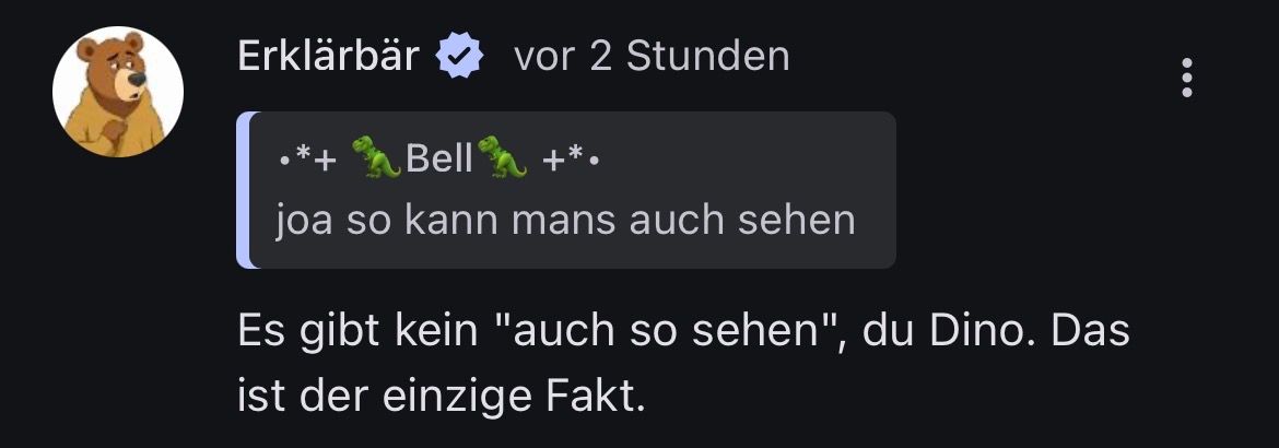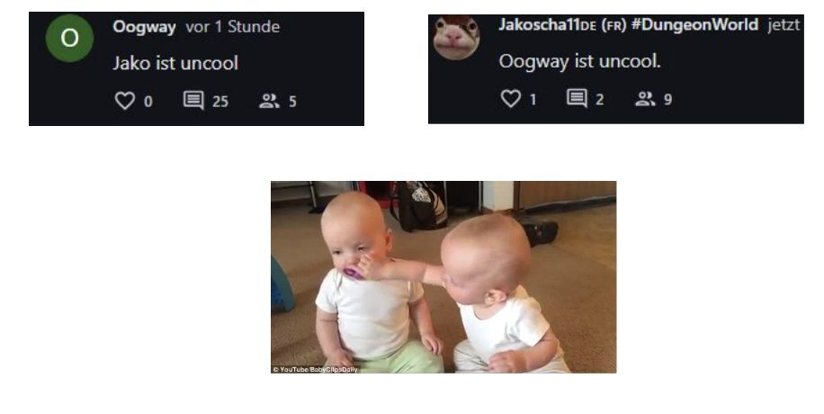 Ich hab unter Oogways Beitrag das Jako uncool sei ein grr Franzosen meme gemacht und sie schreibt eif Hdf das ich mein Maul halten soll das das nicht zum Beitrag gehört und das ich erst seit gestern da bin. Das ist halt eif. Sogar falsch! Ich hab seit gestern ein Konto.