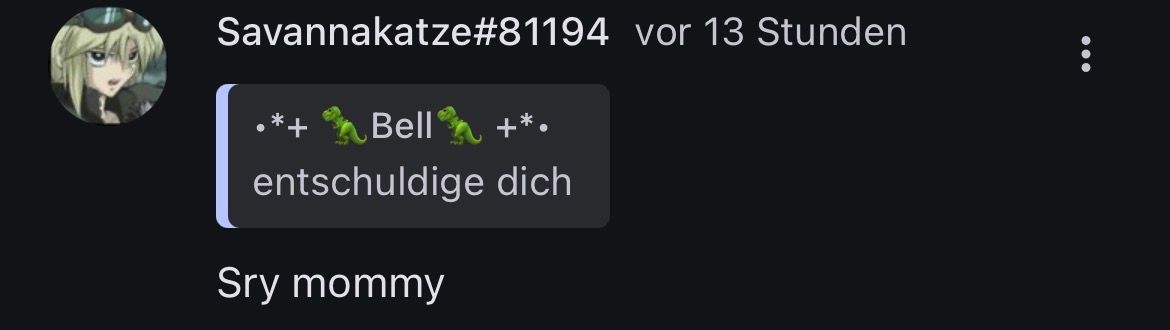 Ich bin hier nicht deine Mutti, die andere zurechtweist. Kümmer dich um deinen eigenen Kram. Oder werd tougher.
