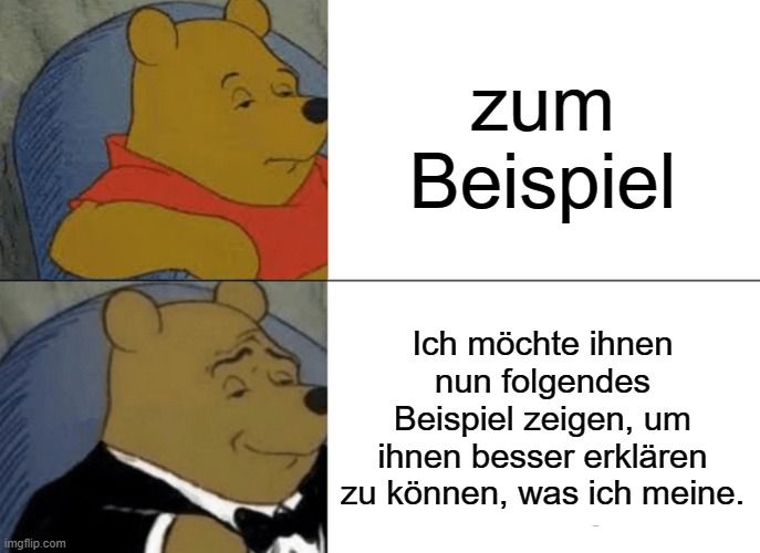 Anonym der 10 000vor 2 JahrenAnоnуmähm es heißt z.B. zum BeispielOder ganz genau: ich möchte ihnen nun folgendes Beispiel zeigen, um ihnen besser erklären zu können, was ich meine