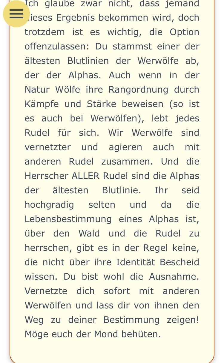 Soso..❤️vor 3 Jahrenhttps://www.testedich.at/persoenlichkeitstests/stars-figuren/fantasy-charaktere/werwoelfe/quiz72/1658957351/bin-ich-ein-werwolf