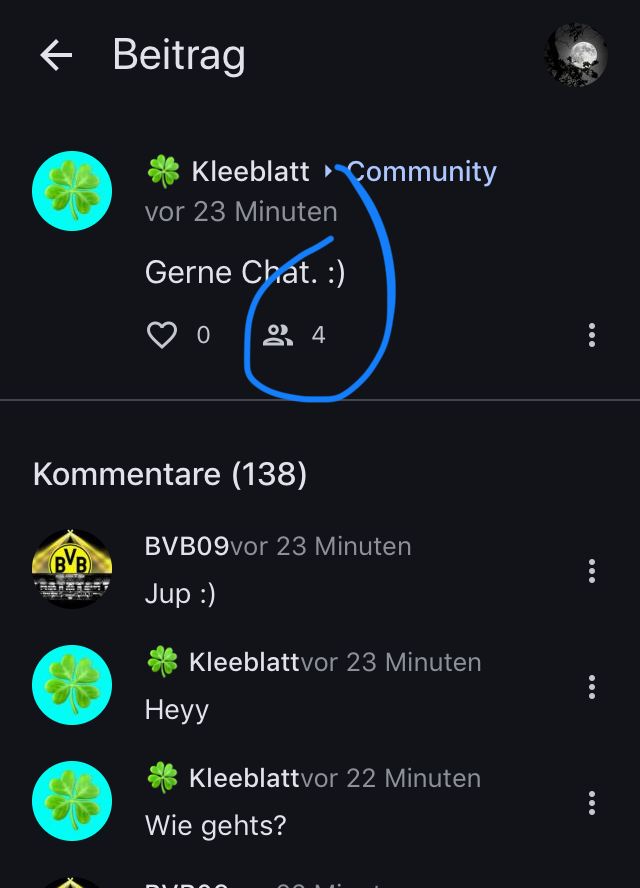 Hab begrenzte handyzeit und da kann ich nicht lange Chatten, ich lese immer Toast Beiträge und kommentiere