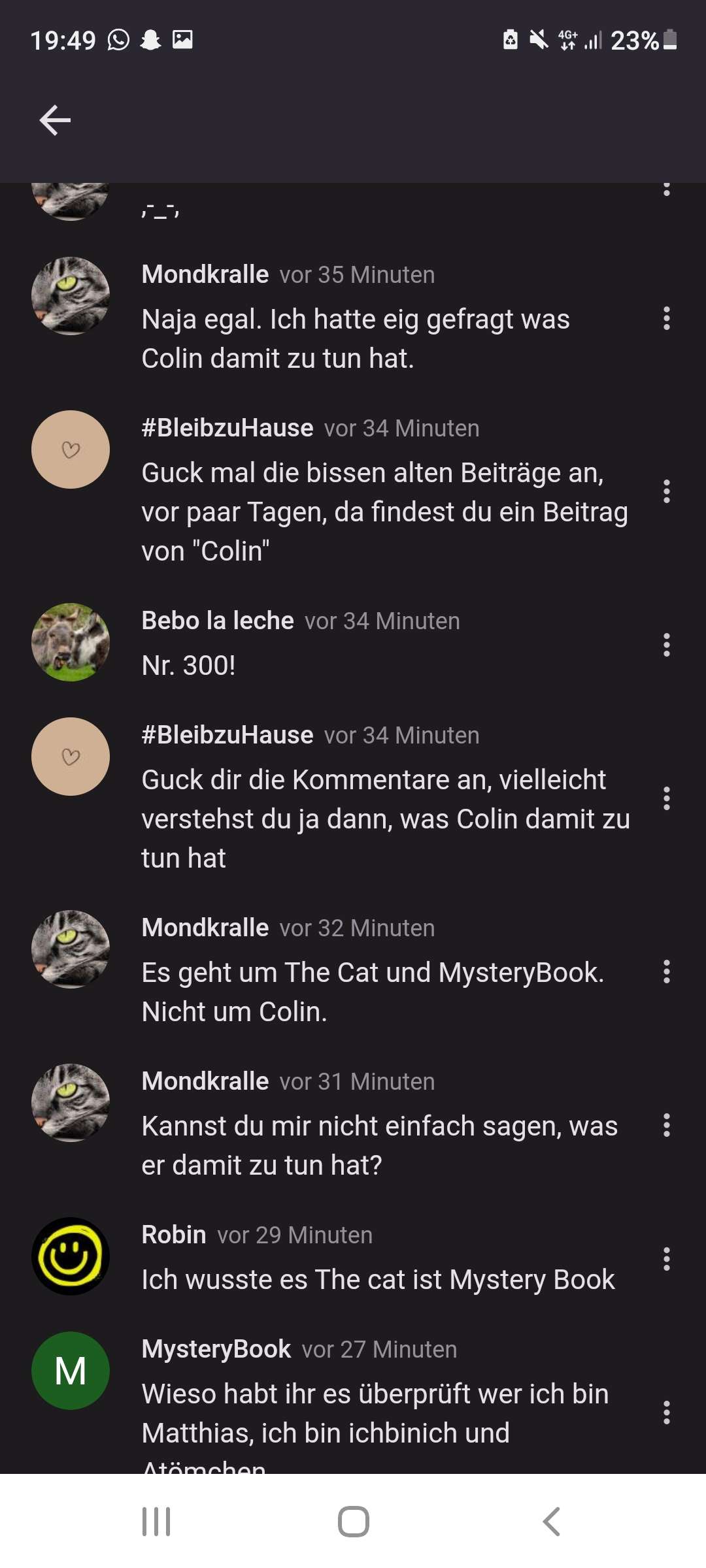 Mondi hättest du die letzten Kommentare vom Beitrag gelesen, wo er oder die Schwester sich als Colin ausgegeben hat, hättest du verstanden, dass es niemand wusste außer Juri und ich, da wir gebeten wurden den Kommentar zu löschen, nach dem Matt das gesagt hatte