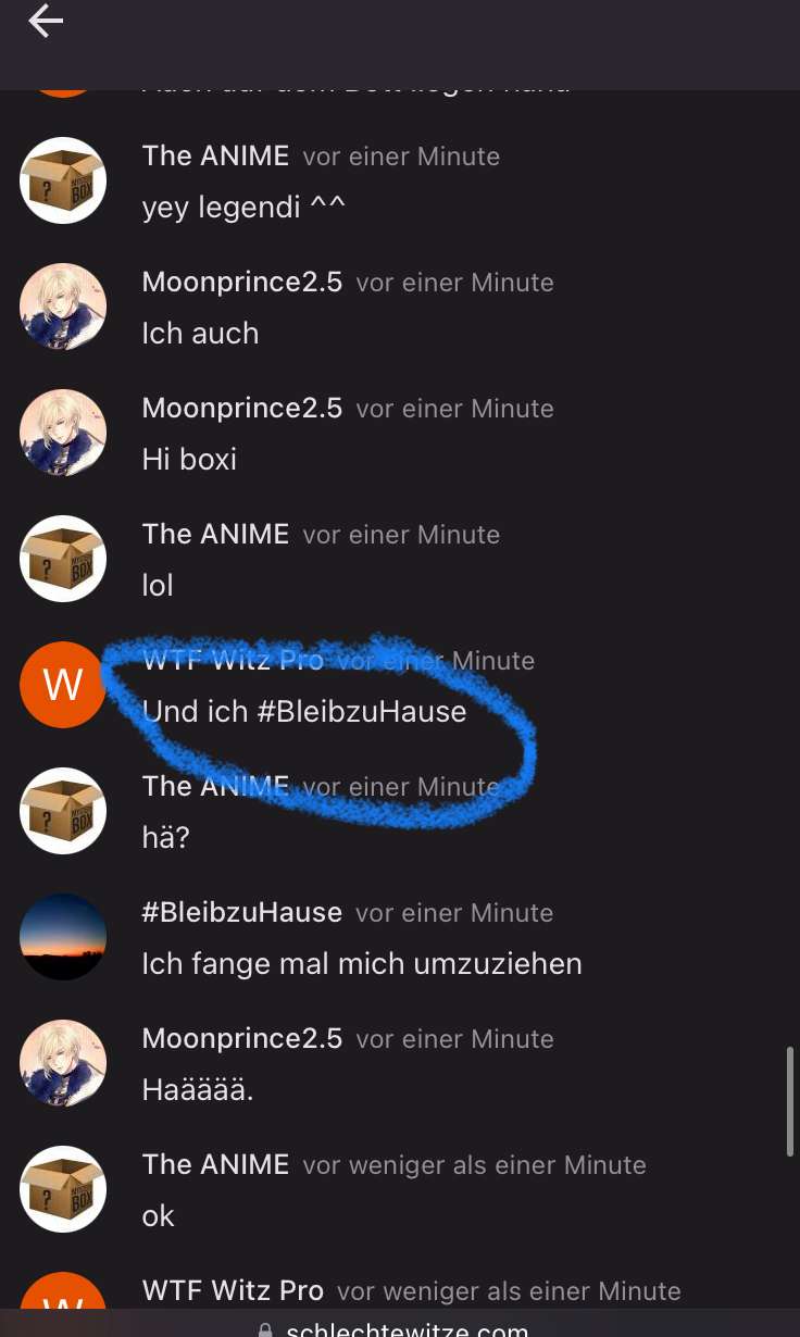 Die sind in dem Chat wo relax fragt wer will chatten sorry