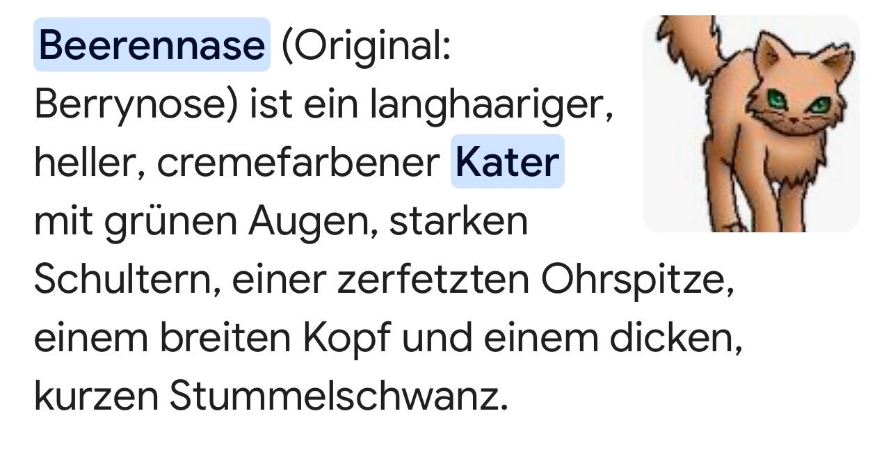 🏳️🌈Drachi🐾#WaCa🐈⬛#Kotlc🦢vor 11 MonatenDogLover11👩💻Beerennase ist auch ein character der in keinem der Bücher vorkommtKlar gibt's den (leider😭)