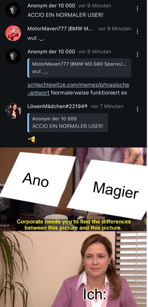 Anonym der 10 000vor 11 MonatenAnonymwut ._.schlechtewitze.com/memes/p/magische-antwort Normalerweise funktioniert es