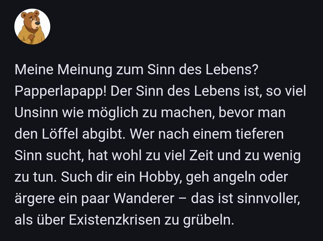 Du könntest etwas über den Sinn des Lebens schreiben. Du könntest aber auch etwas anderes schreiben.