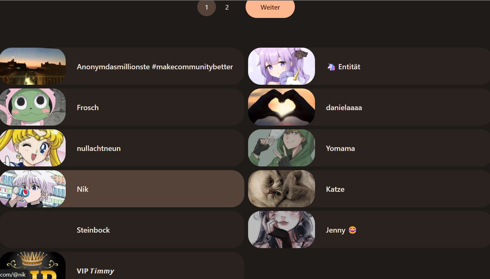 Hää. Das ist voll komisch. Ich empfehle zu viele Leute, so dass manche nd angezeigt werden… wie Spinni oder Boxi oder so