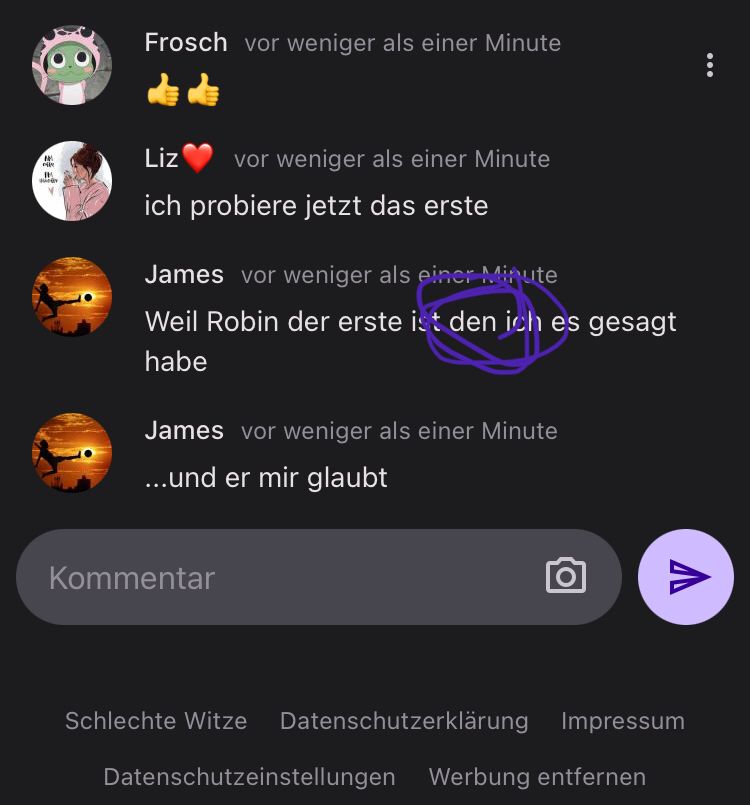 Frosch®-🇪🇸vor 3 JahrenBloß weil Robin dir glaubt, heißt das nd das du wirklich JSP bist und ich muss es ja deshalb auch noch lange nd glauben.
