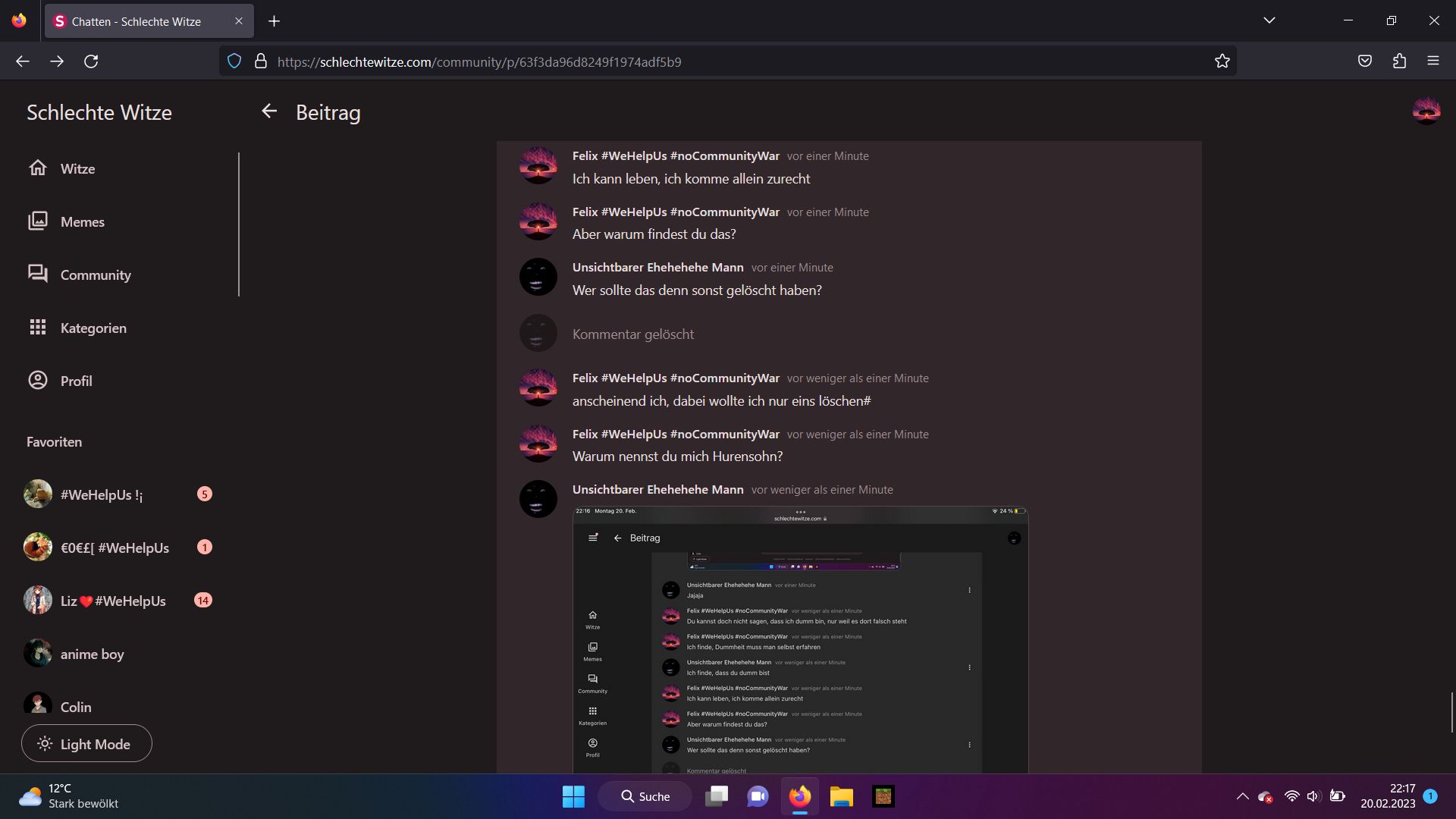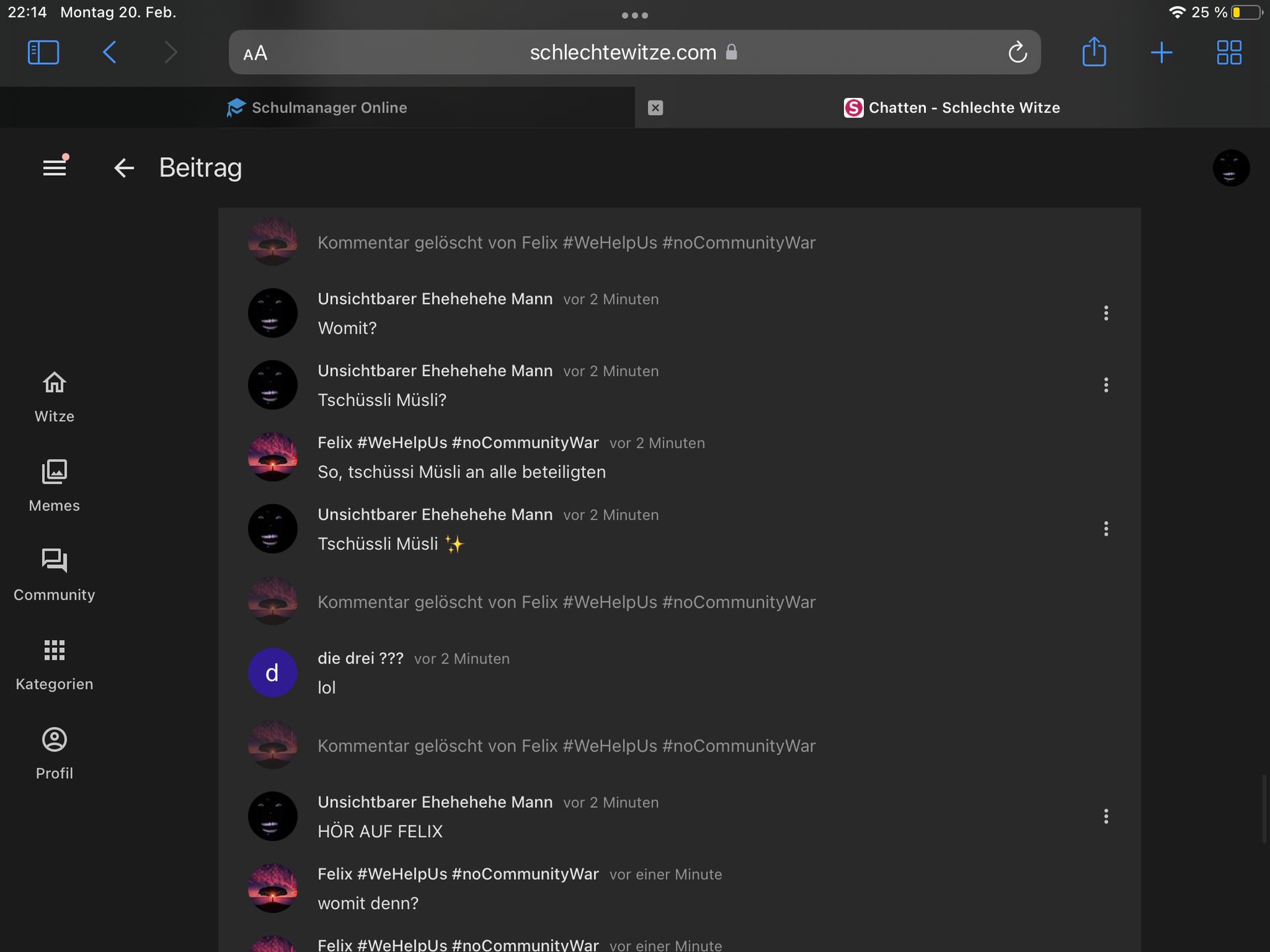 Felix guckt noch in den Chat, weil er denkt, dass ich noch über ihn schreibe