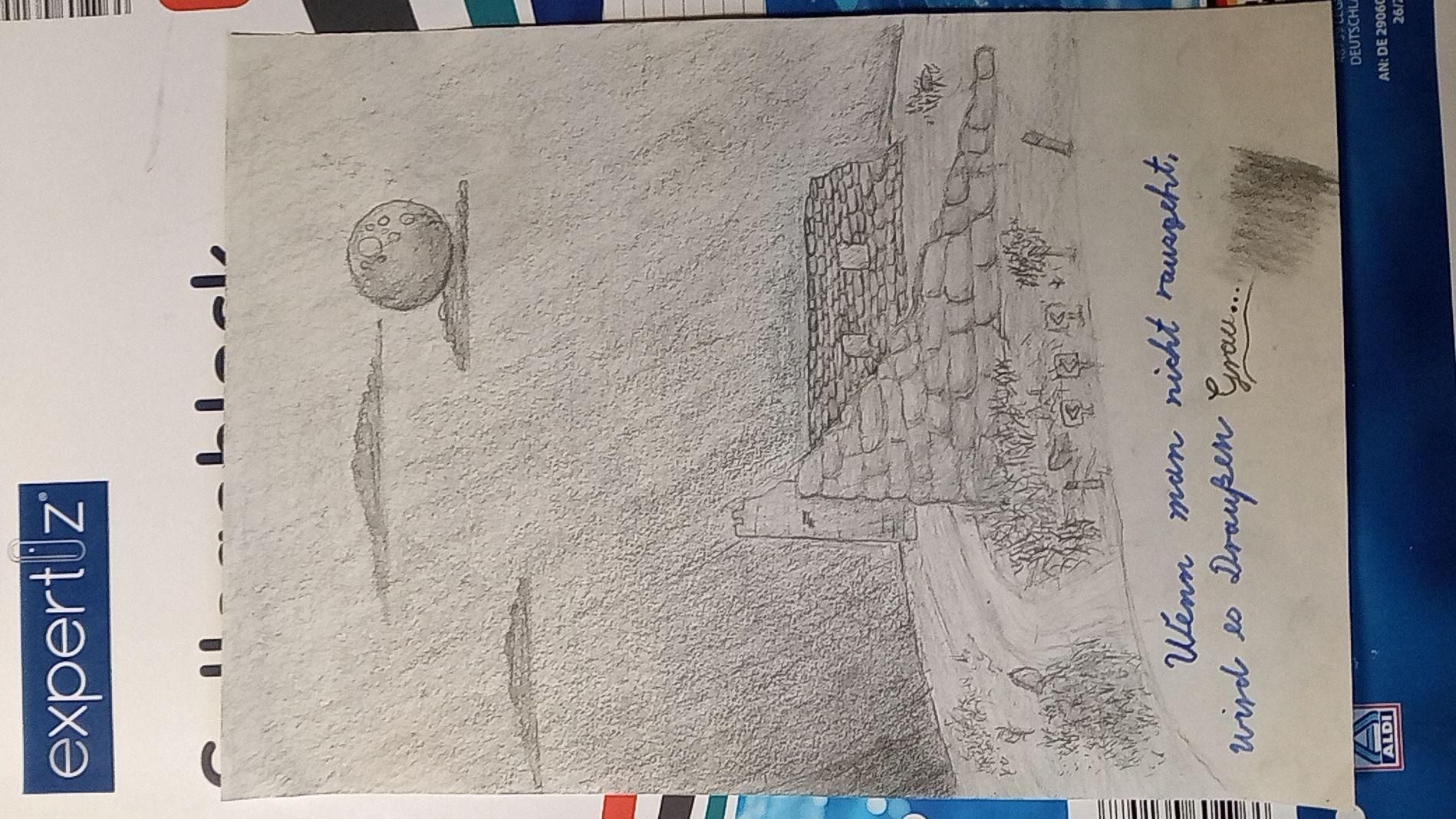 Habe das Bild jz nach n paar Stunden fertig... Aber dank dem Licht sieht man kaum was🥲 (der Turm ist nicht schief aber danke des Lichtes ist plötzlich genau der eine streifen zu sehen und das Bild ist halt dank der kamera ein bisschen schlechter geworden)