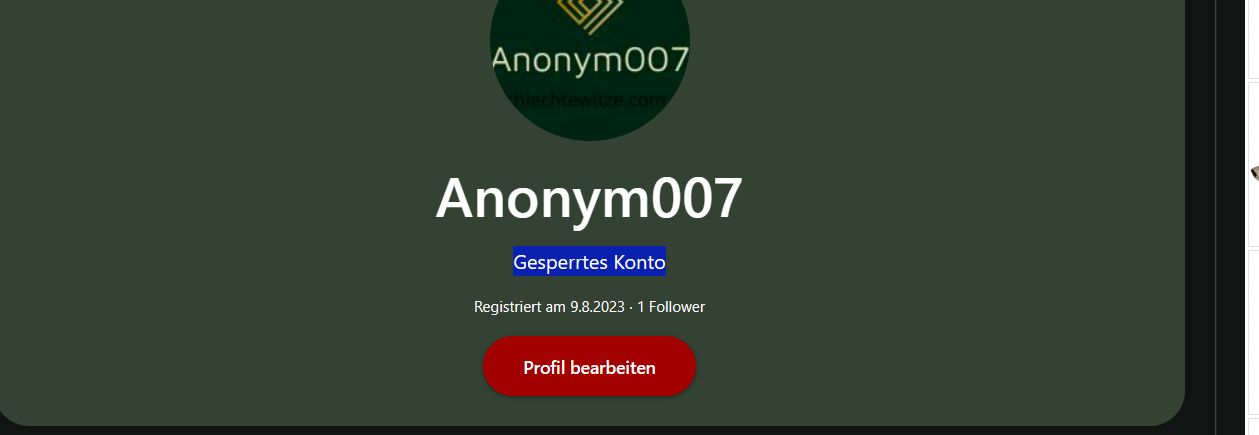 Ich habe seid dem 23.03.2023 auf der Plattform ein Profil, ich bin ein grundsätzlich netter und immer für Feedback offener Creater, und ich bringe gern Leute zum Lachen! Und zudem kommt mindestens ein Witz oder Meme pro Woche! Habt ihr Kritik was ich besser machen kann? Schreib's mir gerne! :)