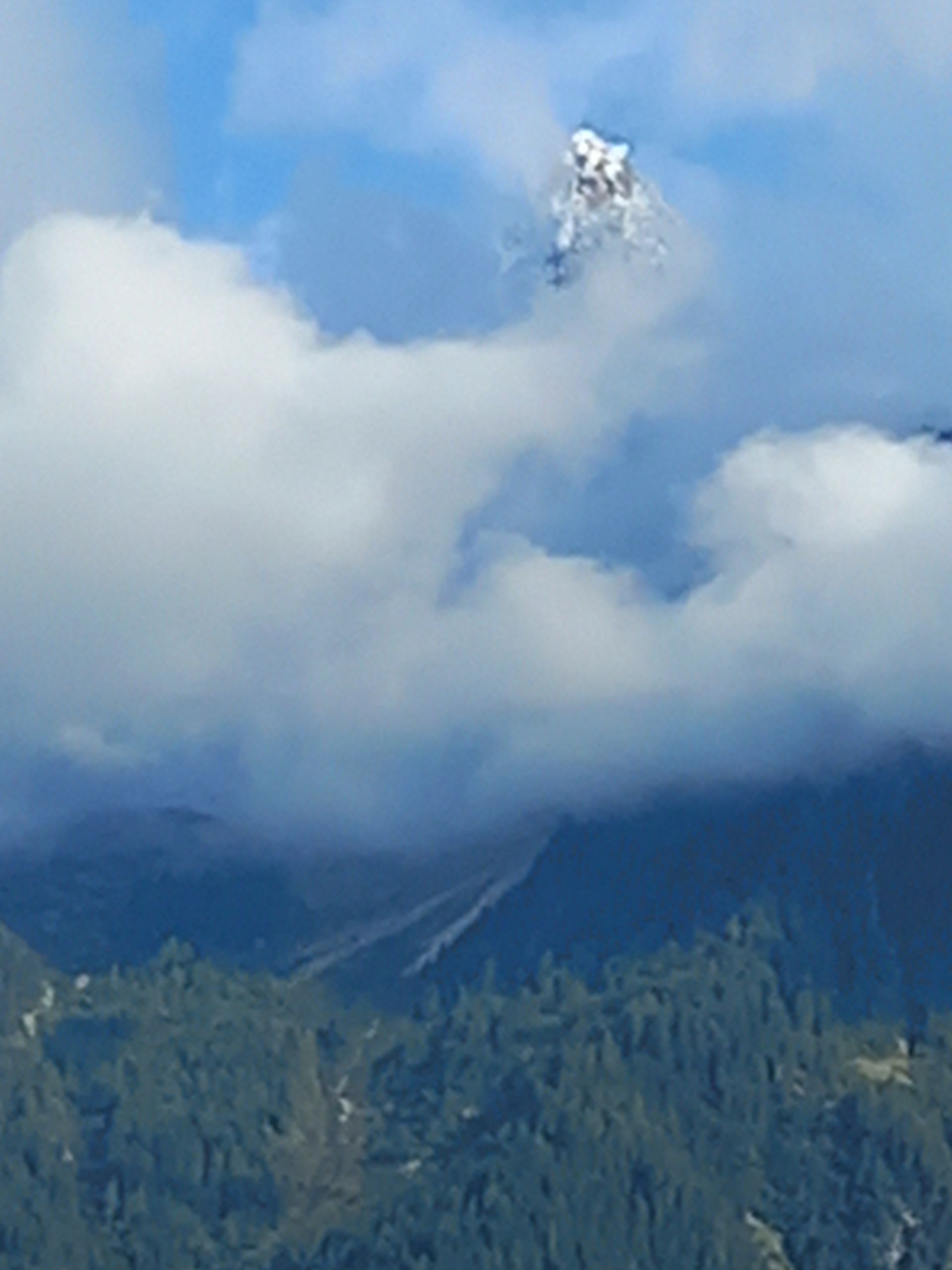 Die Wolken sind gerade so da dass man genau die Spitze sieht