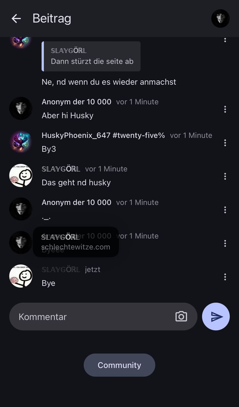 doch habs bemerkt nur hab eif mal nix zu gesagt weil es dann noch länger mit tippen braucht und ich grad am laptop schwer hinterherkomme🥲