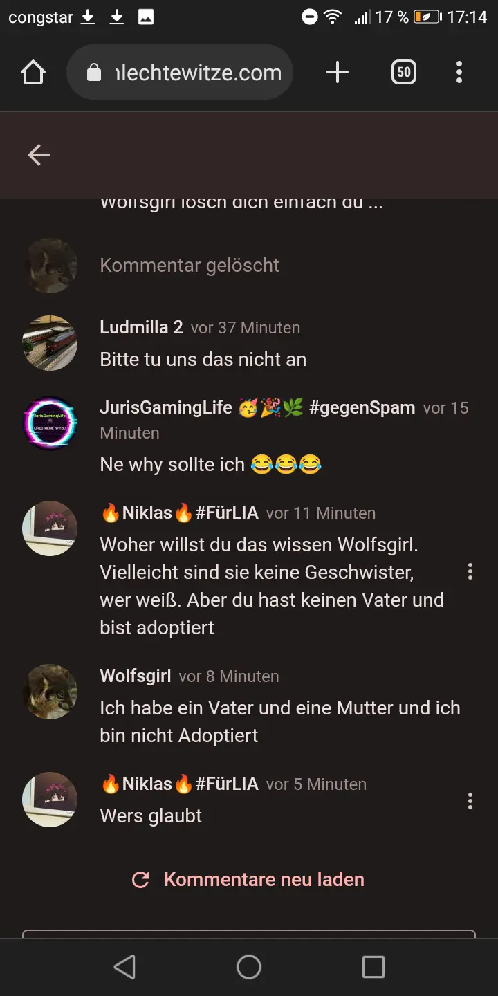 sie hat unter meine witze geschrieben das sie sie dislikt, dann kopiert sie einfach sachen und jetzt noch witz des Monats also mein Meinung: Sie hat echt ein problem