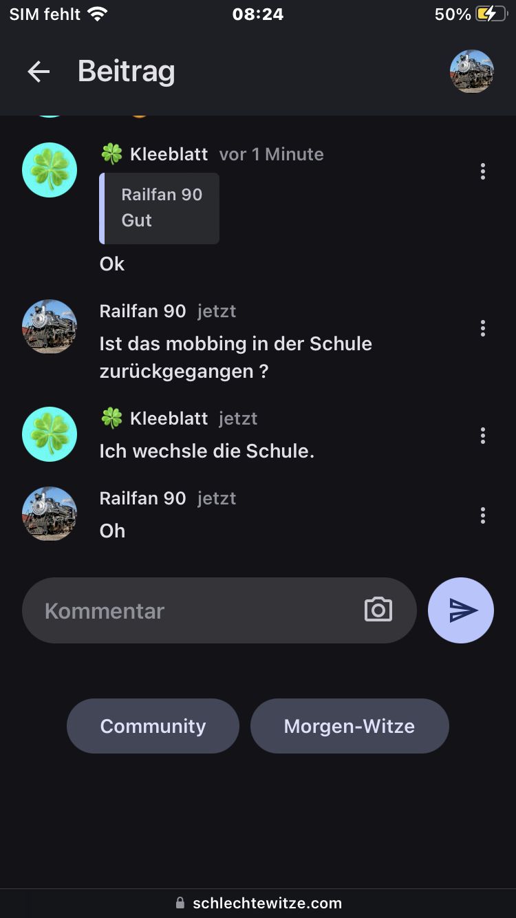 Weil du guten Morgen geschrieben hast, kommen als vorschlag morgen witze🤣🤣