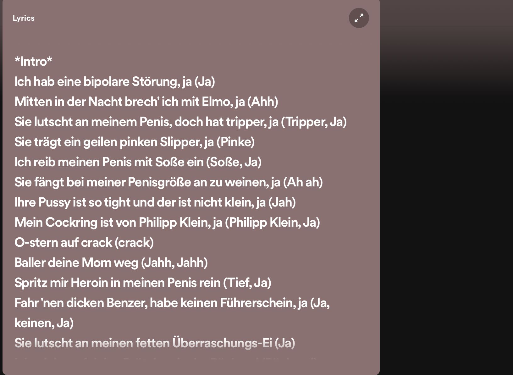 Will sagen: Geld, Drogen, Sex, Markennamen... schon sehr tief in die Rap-Klischeekiste gegriffen ^^ Würde noch ne Gun, ein Pitbull, eine Gang o.ä. fehlen, um das Harter-Bursche-Bild abzurunden