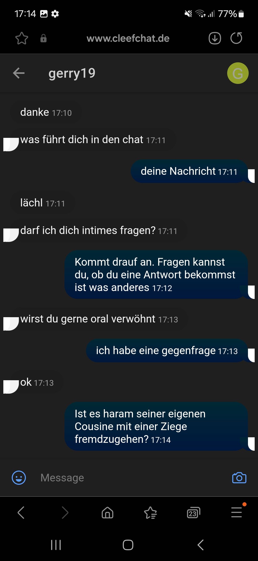 Haha ich liebe diese Leute auf Cleefchat die sind so schön dumm