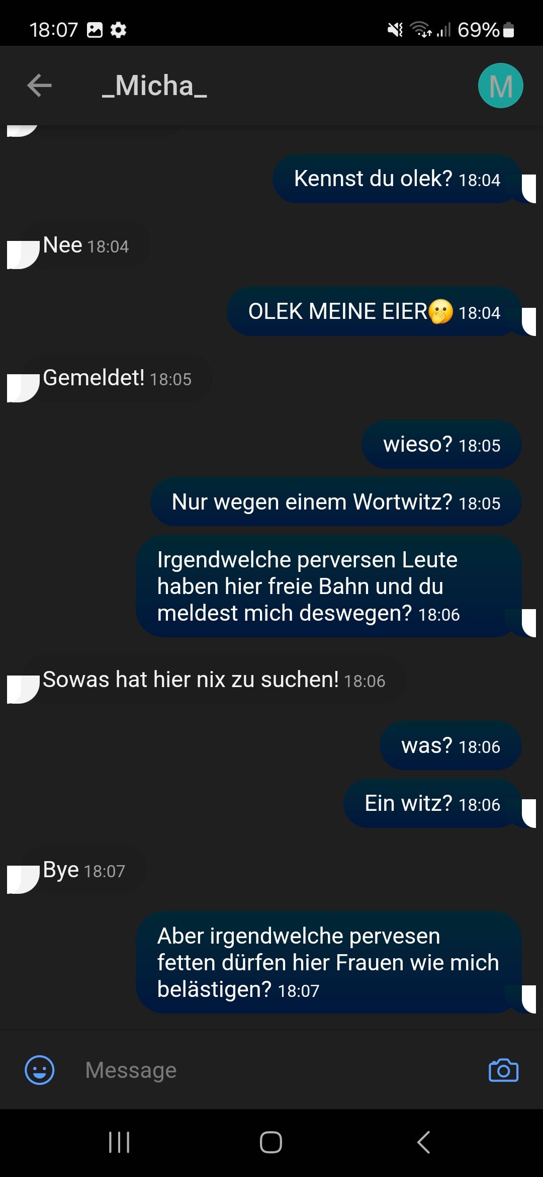 Der Grund für meine sperre war angeblich "Belästigung" 💀