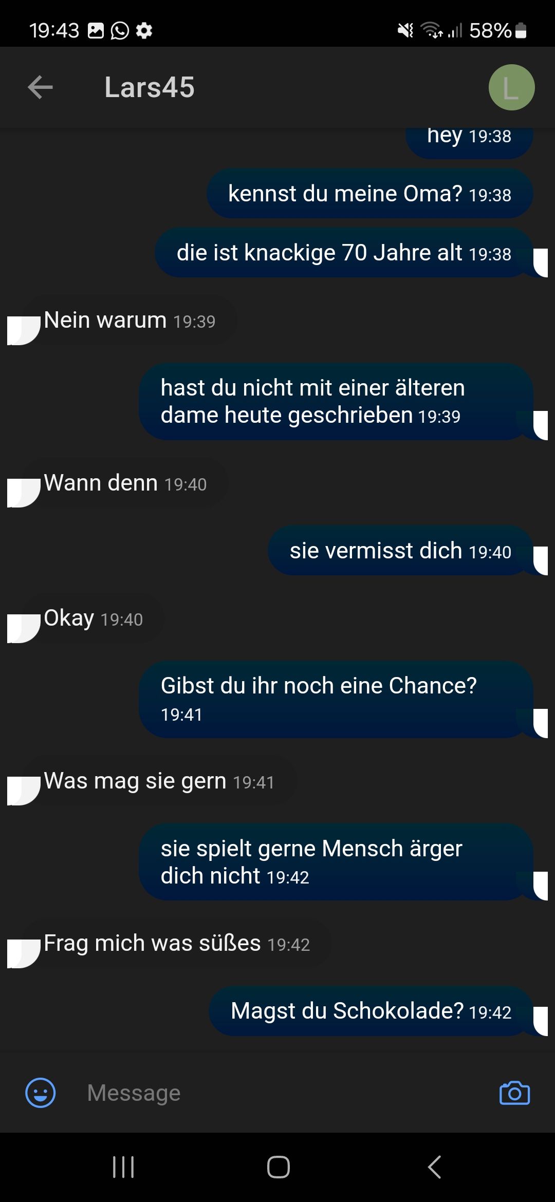 Haha, hab den wiedergefunden, frage ihn jetzt ob meiner meine 70 Jahre alte Oma kennt