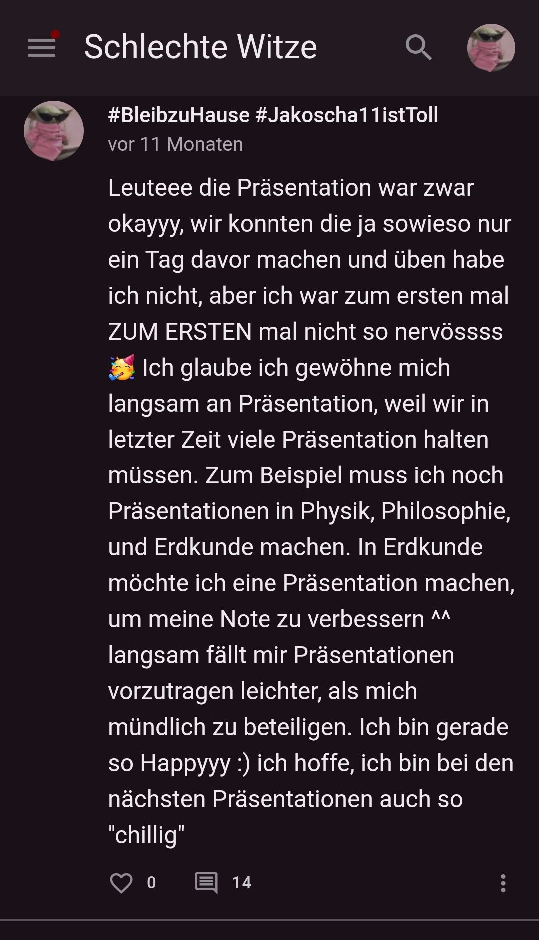 Du hast zwar die Präsentation vor den Ferien verkackt, aber egal, wir haben es jetzt hinter uns und bald ist wieder Schule💪🏻🥲