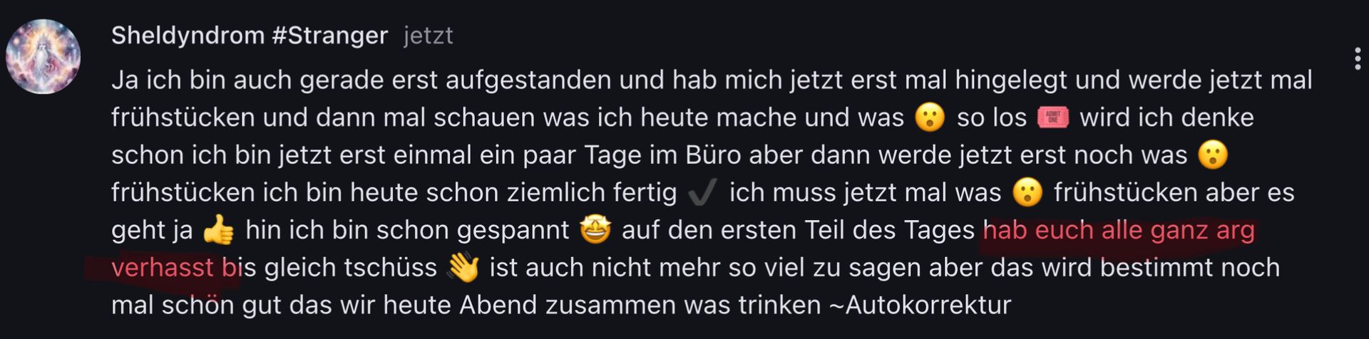 Bin jetzt für heute komplett weg