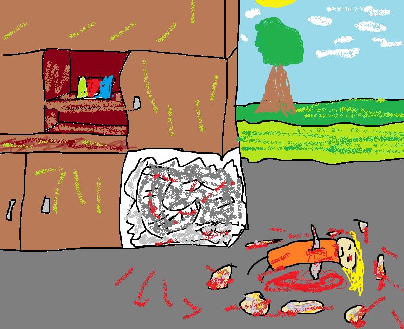 Ich war so n kleines Kind und hab draußen mit nem Mädchen gespielt. Dann war da so ne alte Frau, die war sauer auf uns, keine Ahnung warum. Wir waren draußen an so ner stelle wo auch ne Waschmaschine war und da wollte die alte Frau, dass das Mädchen hinein steigt. Ich hatte schon so bedenken, dass sie sie da einsperren will. Dann wollte die Frau uns damit locken, in dem sie selber rein stieg und zeigte das oberhalb der Trommel ein Hohlraum ist und man da stehen kann. In dem Moment haben wir die Tür zu gemacht und die Waschmaschine ging sofort an o_o. Alles was man hörte waren Schreie O_O und Rumpeln. Wir versuchten sie schnell aus zu machen bzw. die Tür auf zu machen. Es ging recht schwer aber wir schafften es und die Waschmaschine platzte auf und damit auch die Frau und noch andere Leichenteile, sie hatte das scheinbar schon mit anderen Kindern gemacht. Die Frau war tot und hatte ein stück Metall (sah aus wie eine Machete, könnte aber auch ein Teil der Waschmaschine sein) in ihrem Körper stecken und lag dann so erhöht auf dem Boden.