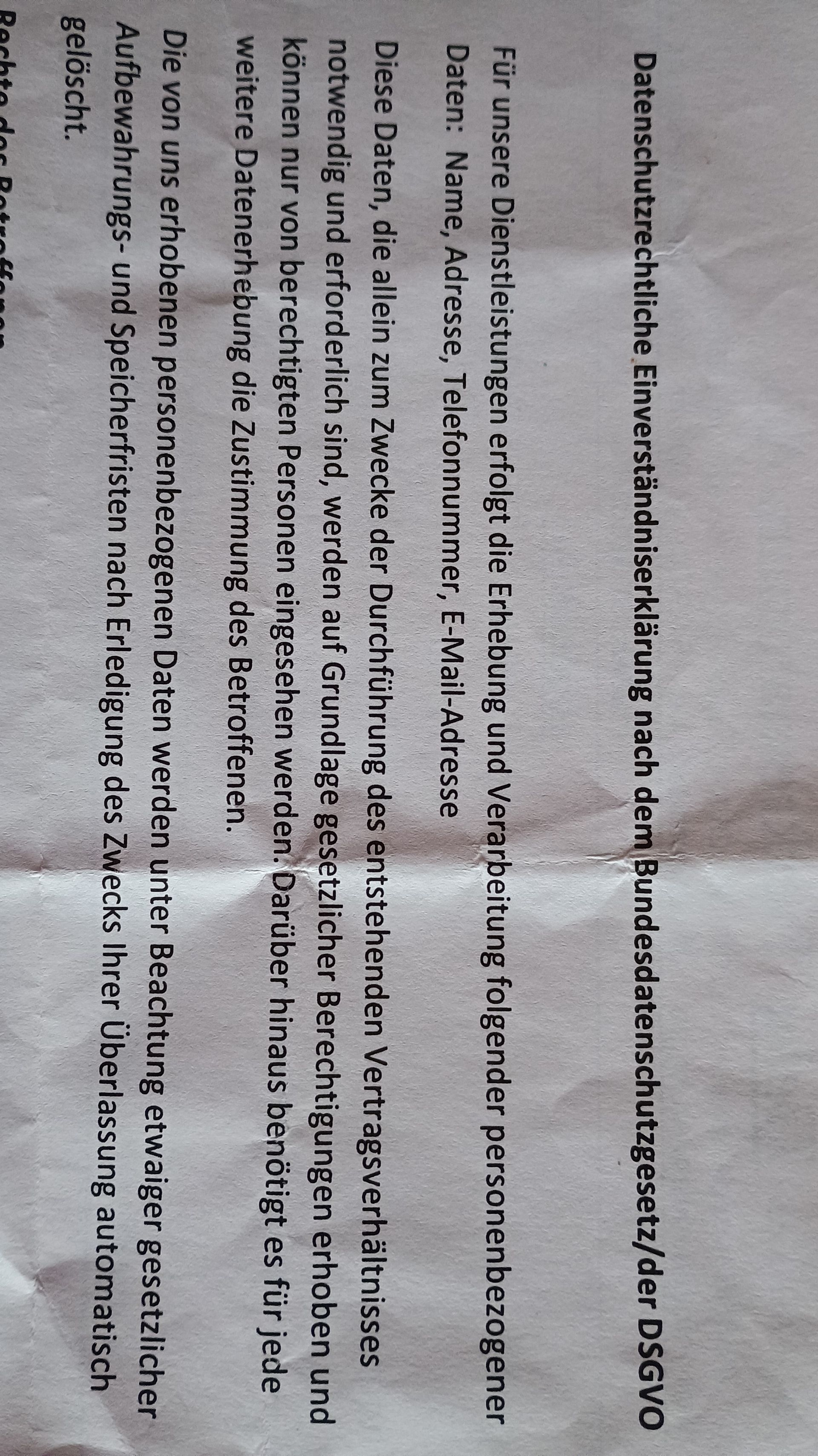 Und lass diesen dämlichen Zettel endlich in Ruhe. Hatten wir nicht letztes Mal schon geklärt, dass das nicht die DSGVO ist, sondern nur die Datenschutzerklärung von *einem bestimmten* Dienstleister?