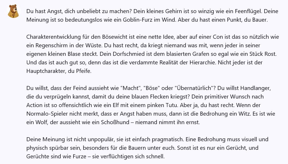 Bin gerade positiv überrascht, dass der Bär mir auch mal recht geben kann (Thema Larp)