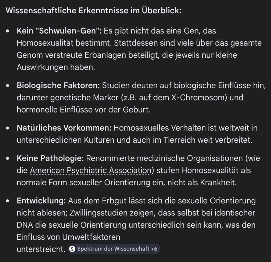 Vor allem, KI ist nicht mal ne Quelle. In beiden Fällen von euch hat die KI irgendwelche Informationen zusammengefasst, die sie im Internet finden konnte...