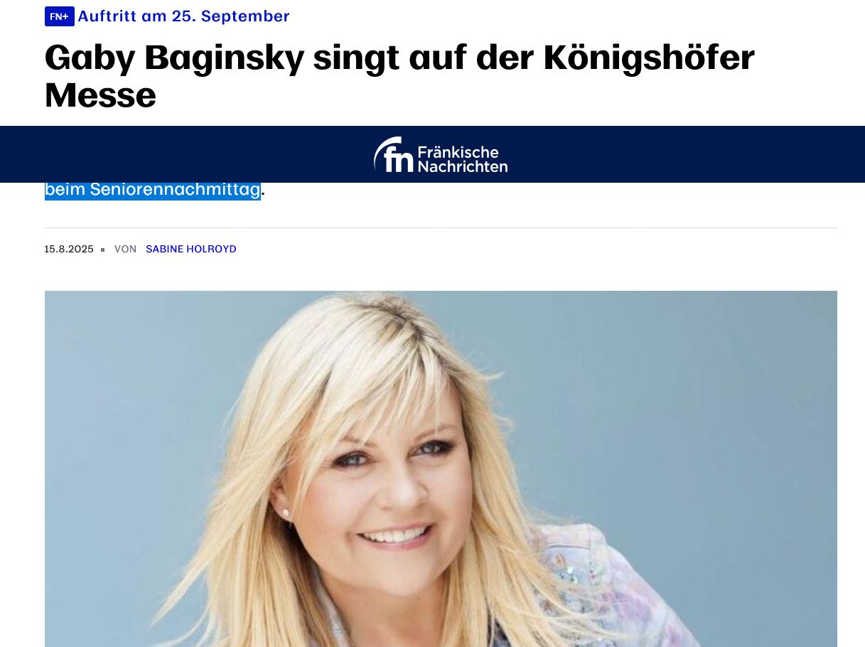 und am 25.09.2025 singt die Gaby Baginsky im Nachbarort Königshofen mit anschließender persönlicher Autogrammstunde