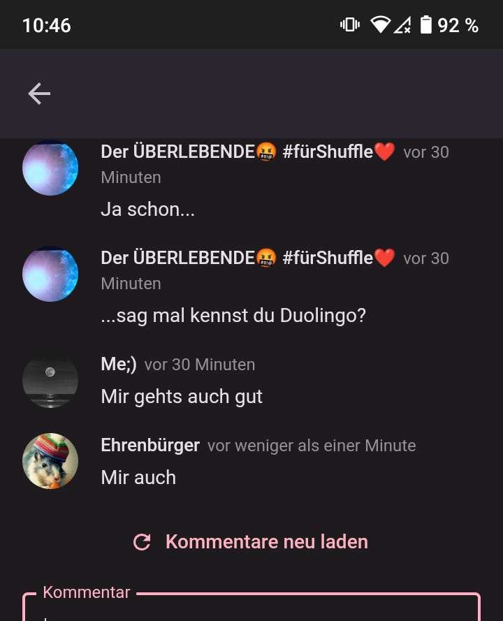 JJar Jar Binksvor 3 JahrenHab Duolingo, ist ganz geil. Hab aber auch das Pro Abo geholt um nicht alle 4 Einheiten Werbung angucken zu müssen
