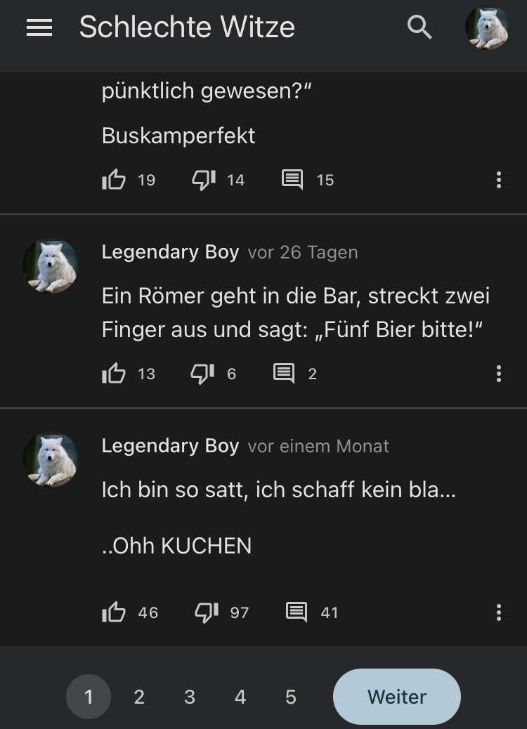 Jemand gibt allen Witzen mehrere Dislikes außer manchen (vermutlich den eigenen). Und das halt jeden Tag mehrmals.