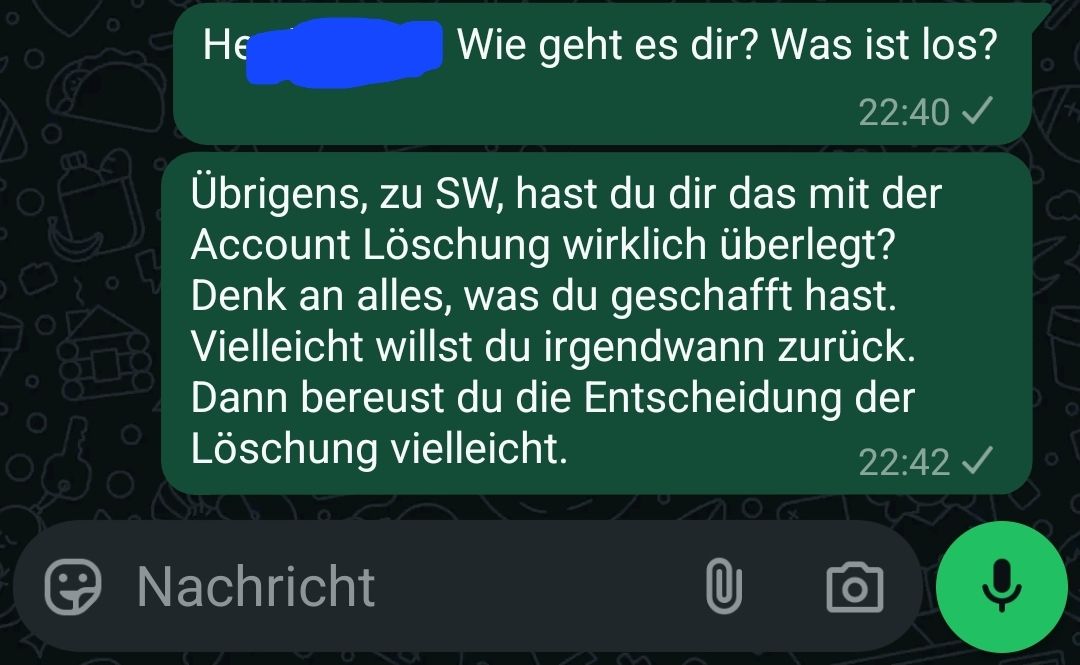 Also meine letzte Nachricht war am 2. Dezember🥲