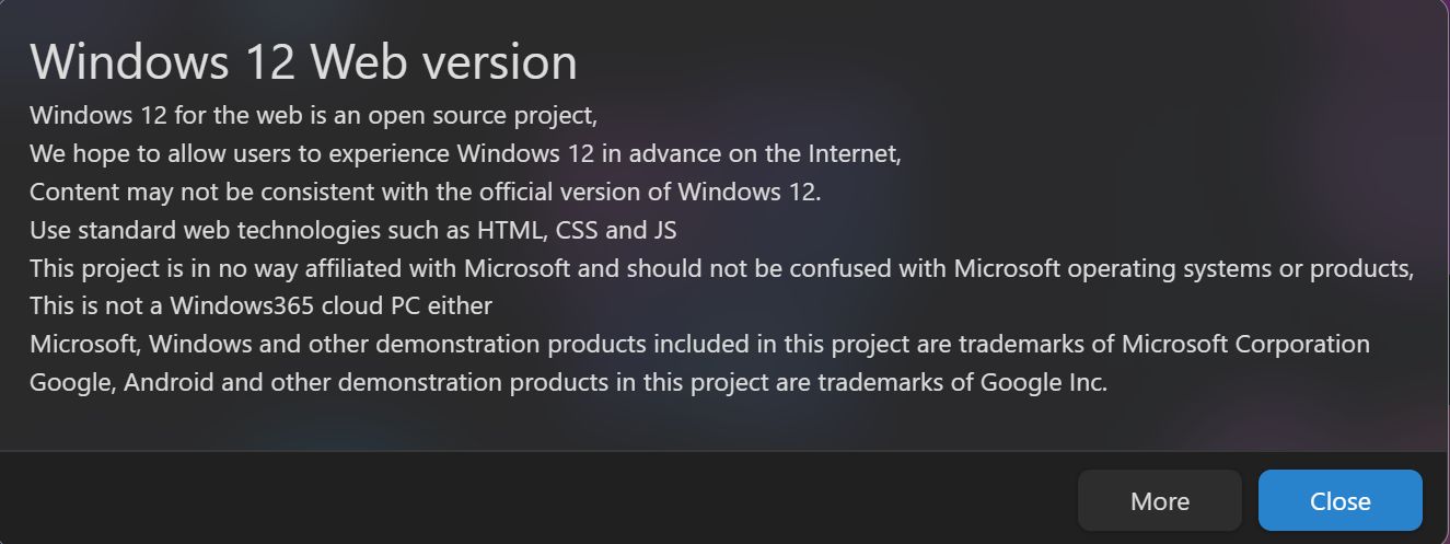 "This project is in no way affiliated with Microsoft and should not be confused with Microsoft operating systems or products"