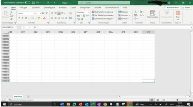 Leute, es ist vollbracht... ich habe heute in excel ganz nach unten und ganz nach rechts gescrollt xD (ja, ich bin hobbylos) Auf alle Fälle endet es bei XFD1048756